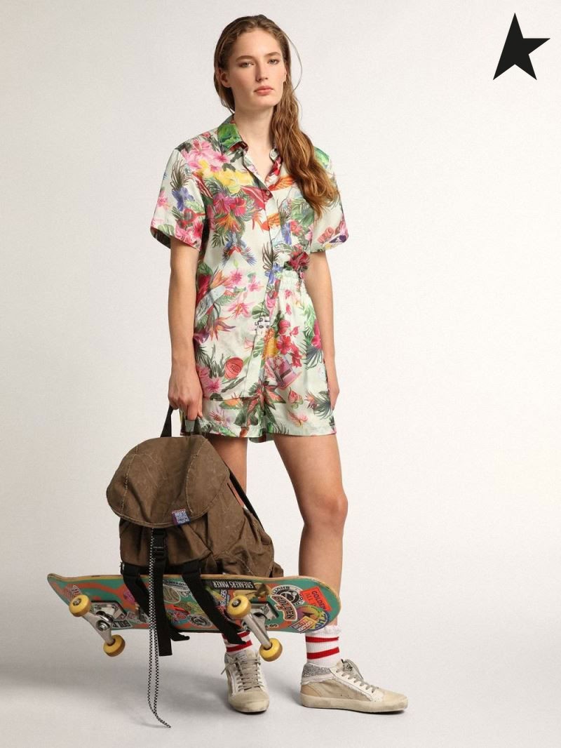 Golden Goose Dew-green Journey collection shorts with all-over multicolored tropical print green