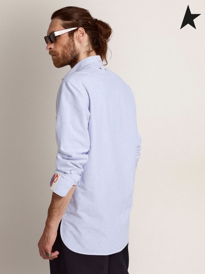 Golden Goose Golden collection Oxford shirt with light blue candy stripes white light blue