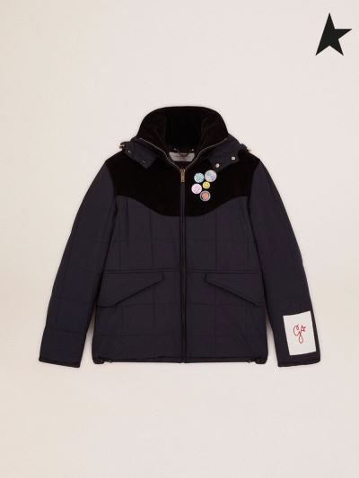 Golden Goose Golden collection padded jacket in dark blue nylon and black cotton corduroy dark blue black