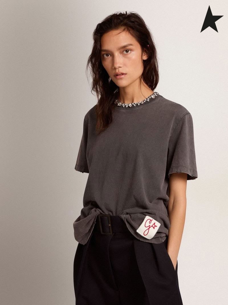 Golden Goose Golden collection T-shirt in anthracite gray with cabochon crystals dark gray