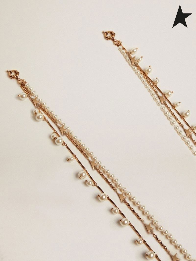 Golden Goose Heritage Jewelmates collection necklace with four chains in old gold color with beads and stars white gold color