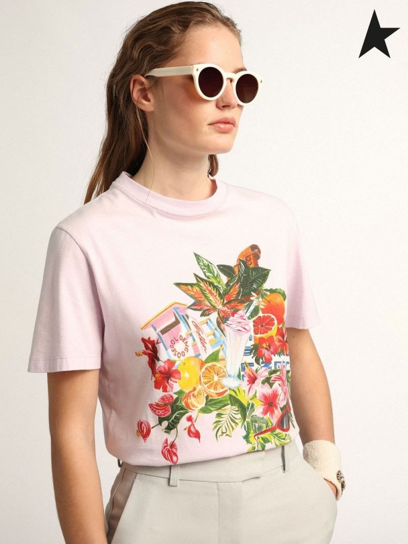 Golden Goose Lavender Journey collection T-shirt with multicolored tropical print lavender