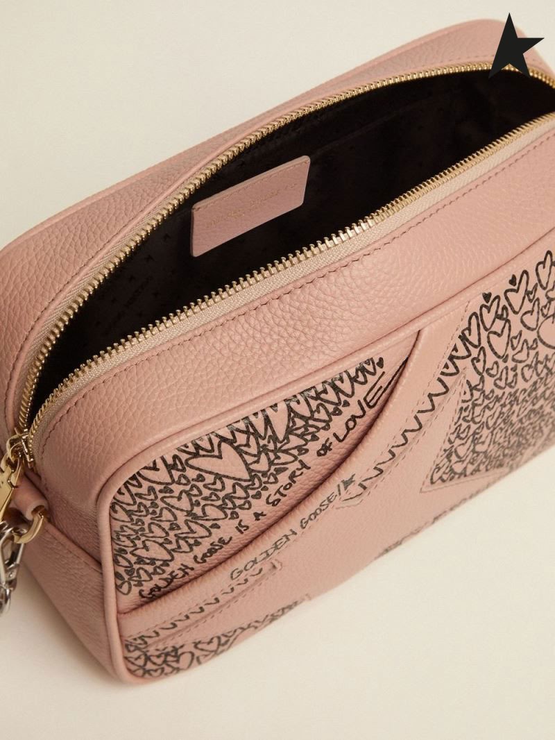 Golden Goose Nude Star Bag made of hammered leather with love-themed designs red Black gold color