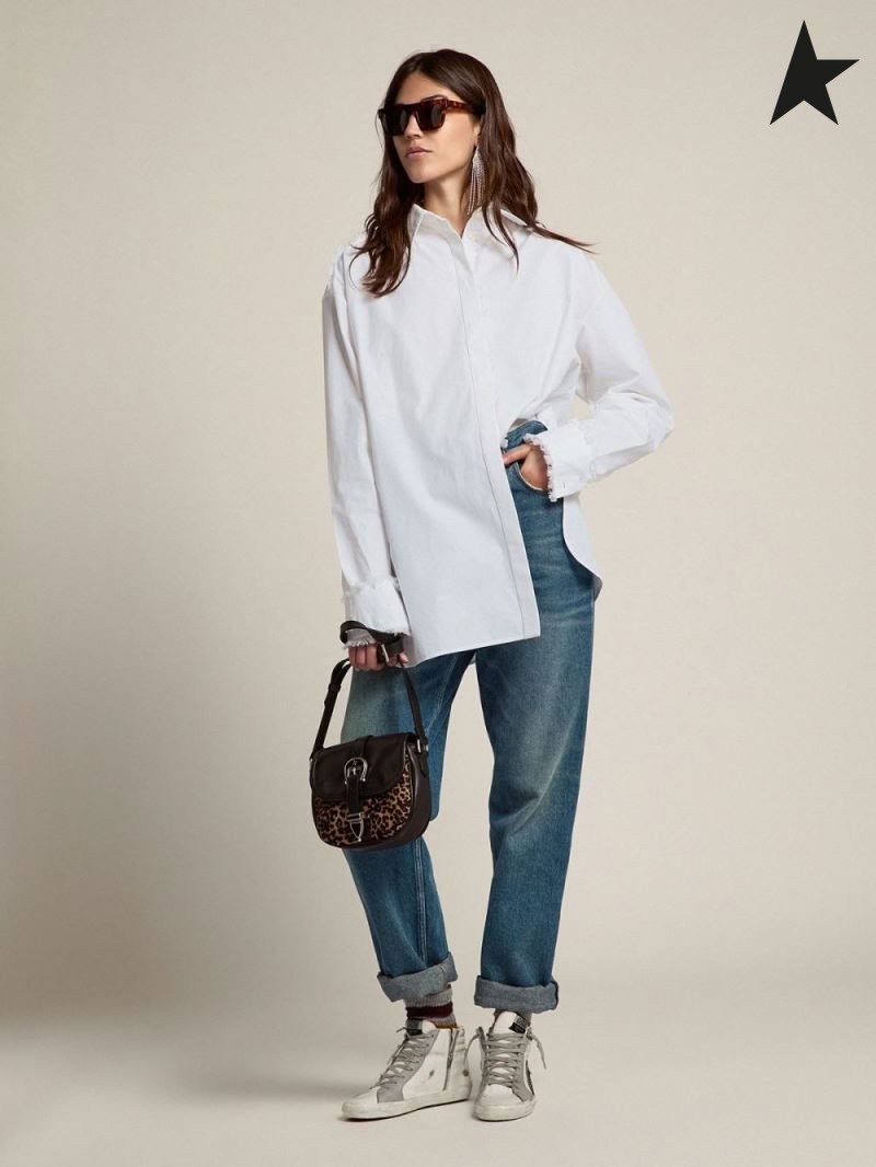 Golden Goose Oversize Journey collection Davia shirt in white raw-edge poplin white
