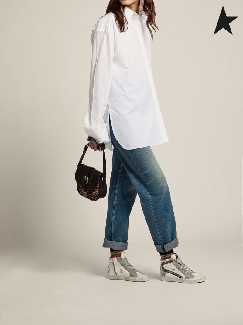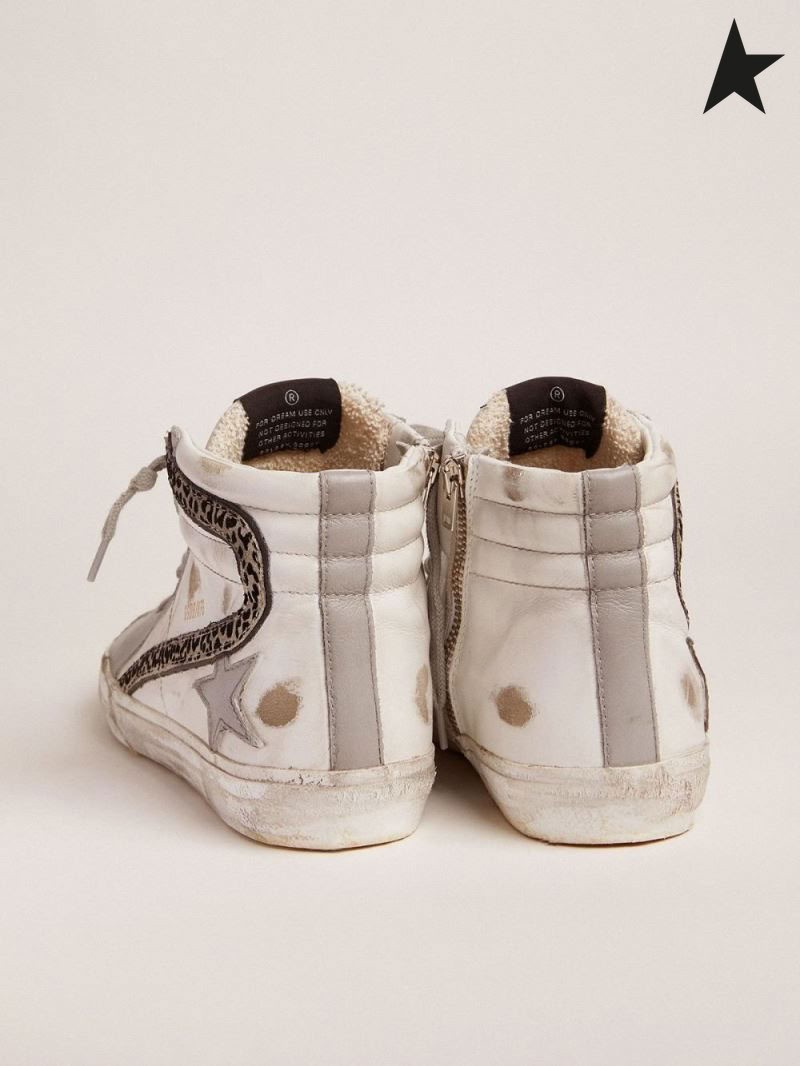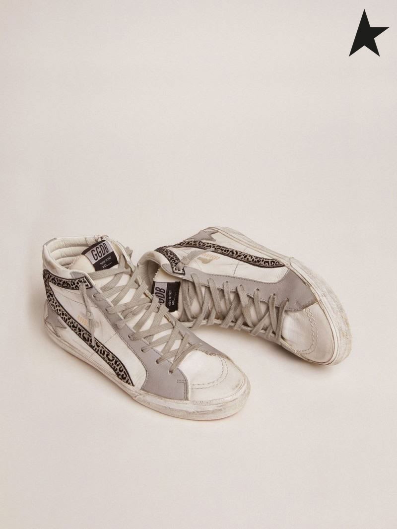 Golden Goose sneakers with white and gray leather upper and leopard-print suede flash white gray