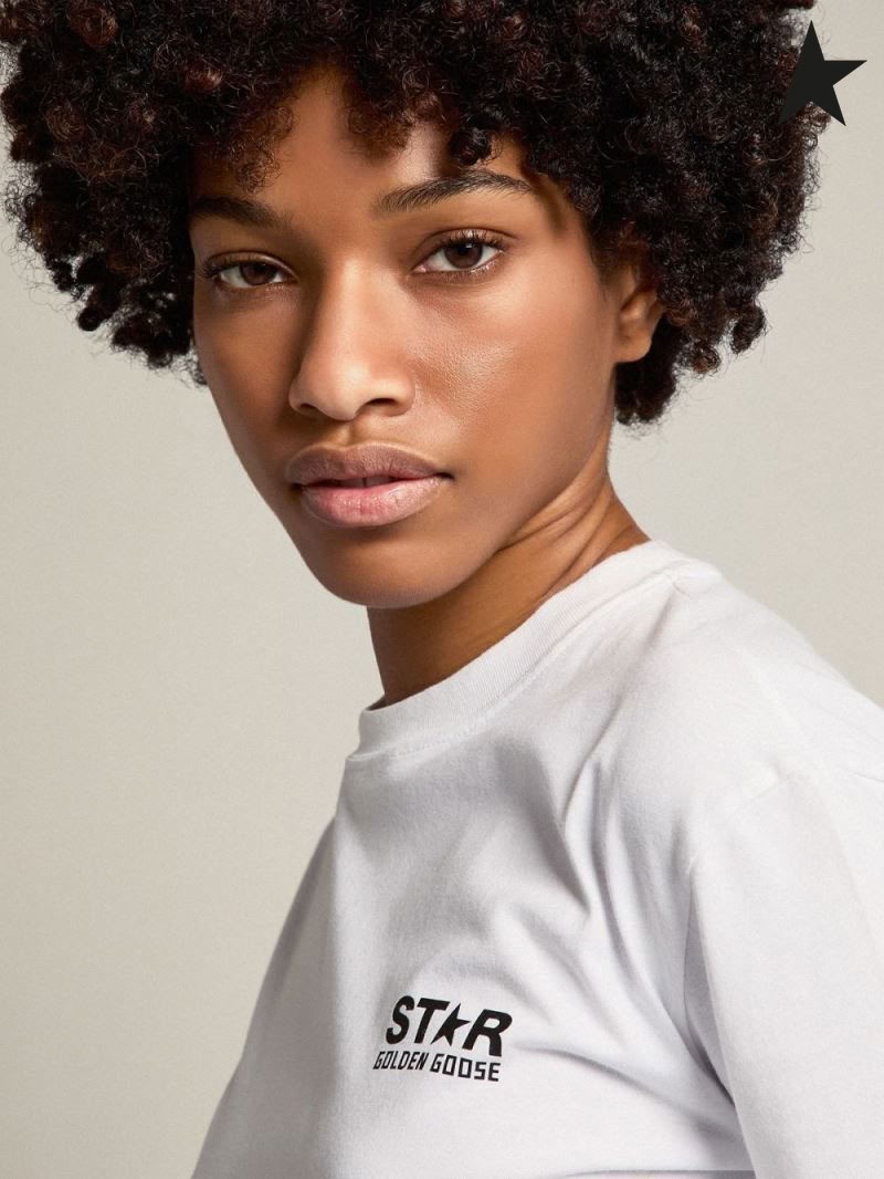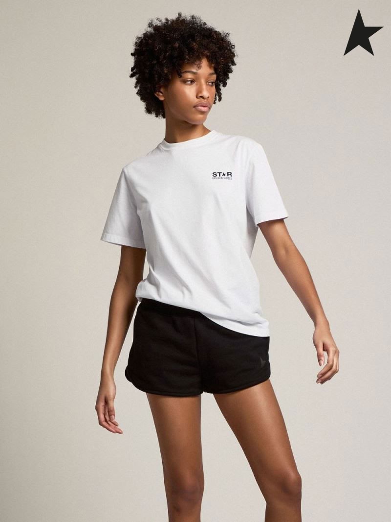 El Ganso de oro Blanco de la Estrella de la colección T-shirt con el contraste de negro y el logotipo de estrella blanca