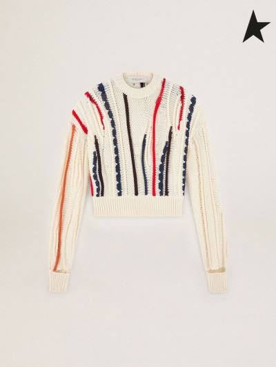El Ganso de oro Blanco de Viaje de la colección de Dasha un suéter de color macro intarsia Beige blanco