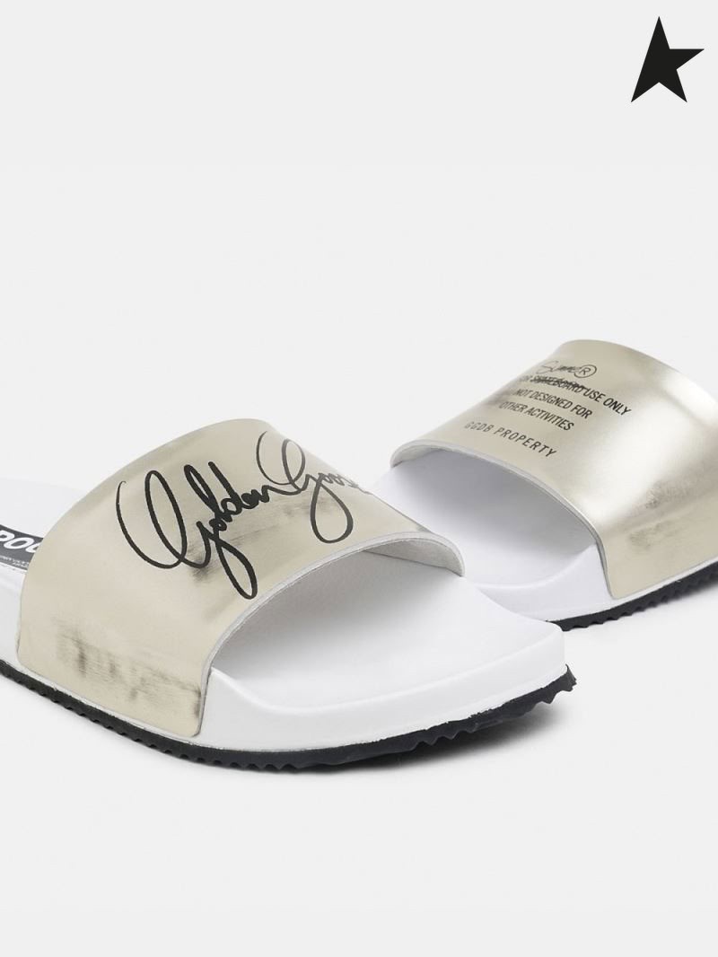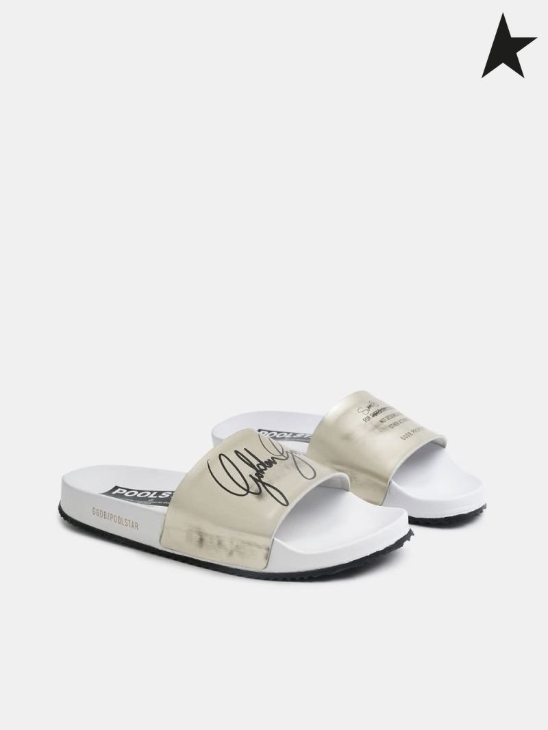El Ganso de oro blanco Poolstars zapatillas de deporte con el oro de la correa del color del oro negro