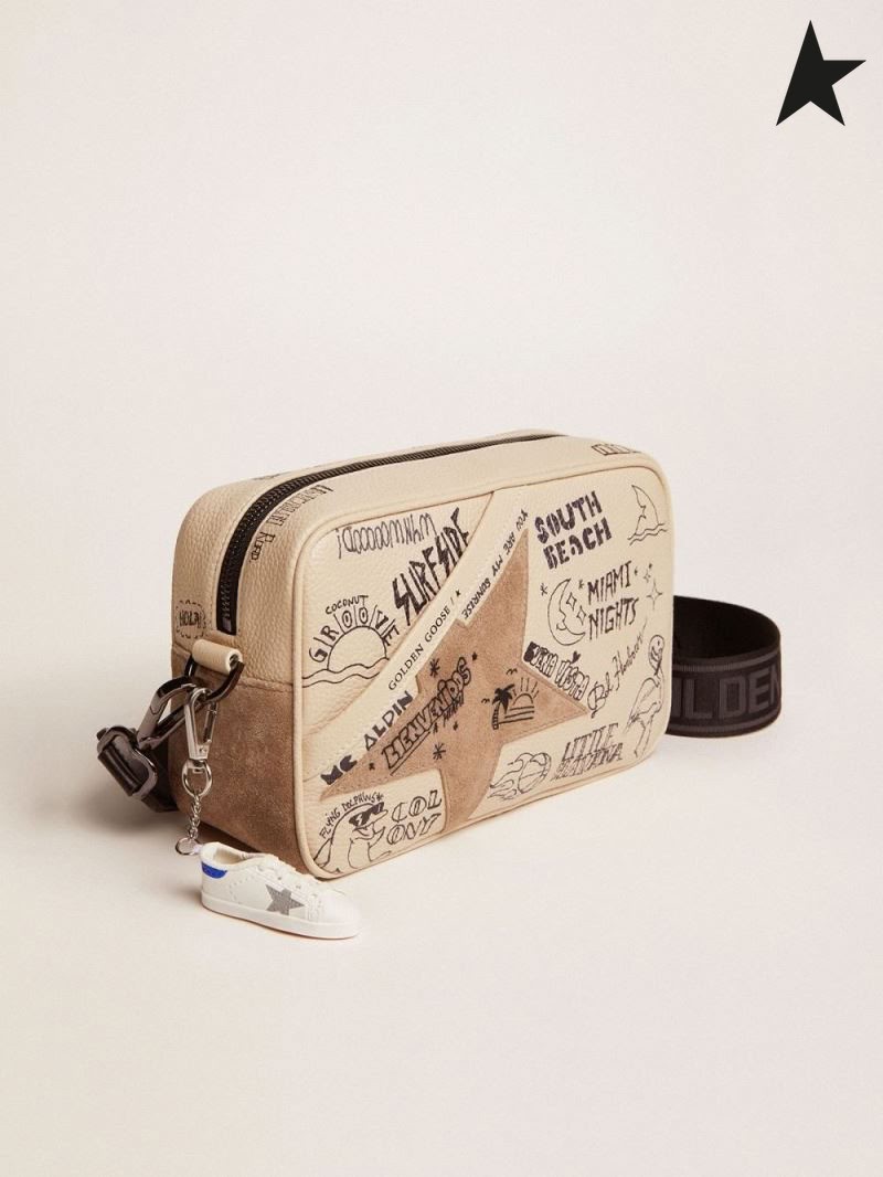El Ganso de oro de la Estrella de la Bolsa en cuero blanco con el contraste de negro y letras de paloma-gamuza gris estrella blanca
