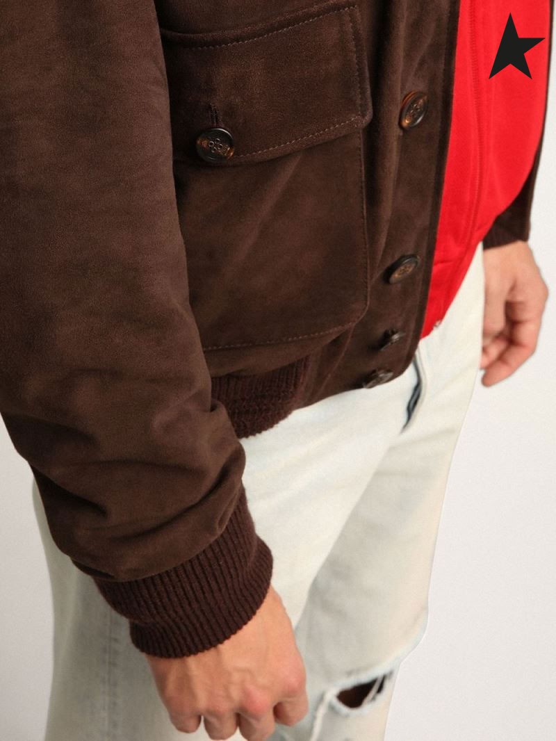 El Ganso de oro de Oro de la colección chaqueta de vuelo en marrón oscuro de gamuza marrón oscuro