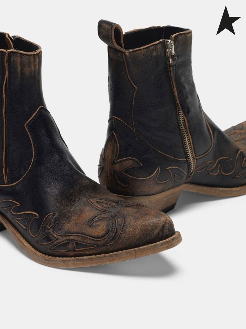 El Ganso de oro Negro de la edad de cuero Santiago botas de tobillo