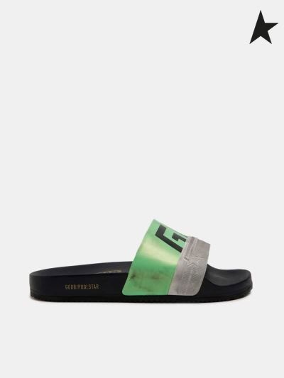 El Ganso de oro Negro Poolstars Zapatillas de deporte con el verde de la correa y el logotipo verde negro