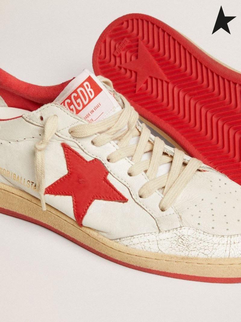 Ganso de oro de la Bola Blanca Star zapatillas de deporte de cuero con el estrella roja y el talón ficha blanca