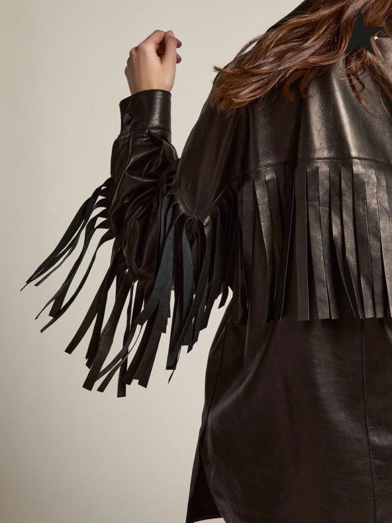 Golden Goose Oversize de Viaje de la colección de Darcie camisa en nappa negro de piel de cordero negro con flecos