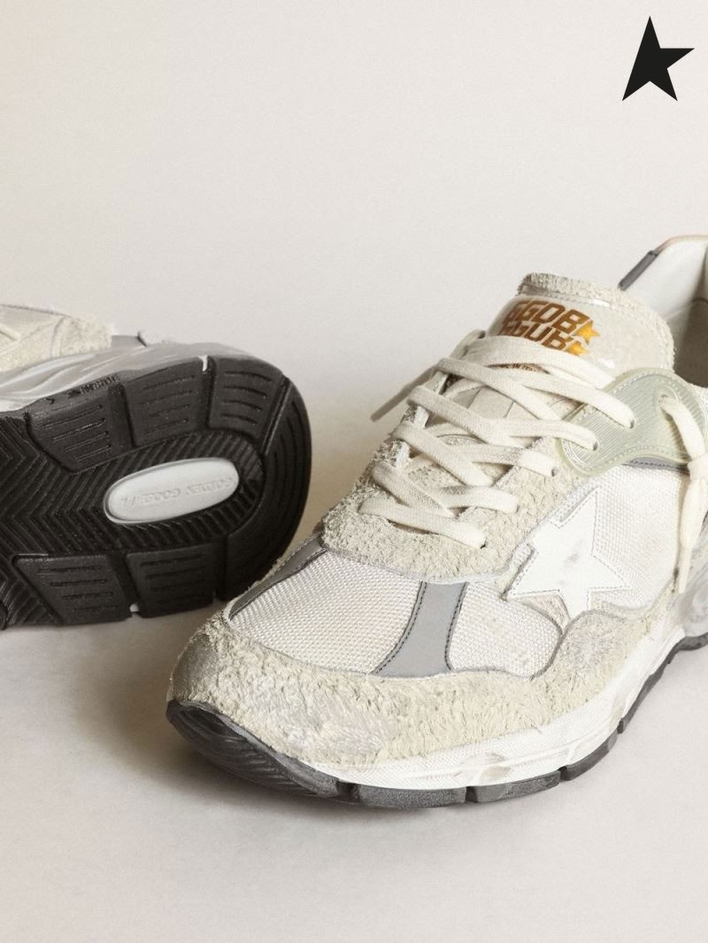 Golden Goose Papá-Star zapatillas en blanco y gris gamuza con piel blanca estrella blanca