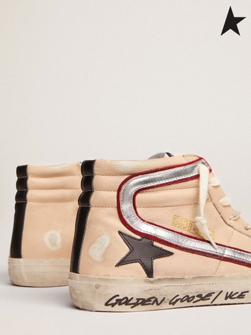 Golden Goose Penstar zapatillas en el pálido color salmón en cuero nappa con cuero negro de la estrella y la plata laminada de cuero flash rojo negro plata