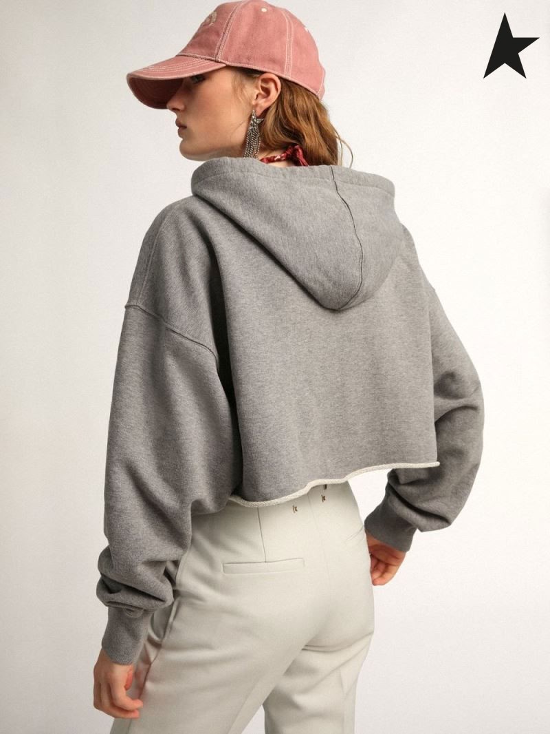 Golden Goose Recortada de Viaje de la colección de sudadera con capucha en color gris con azul oscuro letras de Oro gris