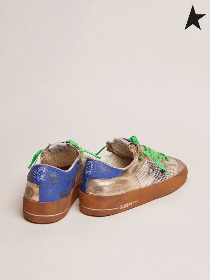Golden Goose Stardan LABORATORIO de zapatillas de deporte en los laminados de cuero y malla con un azul eléctrico, ficha talón negro Fluorescente verde
