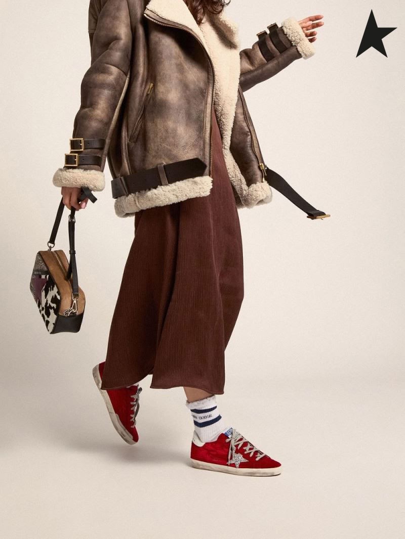 Golden Goose Super-Star LTD zapatillas en el muaré roja de terciopelo, con cristal de Swarovski de la estrella roja