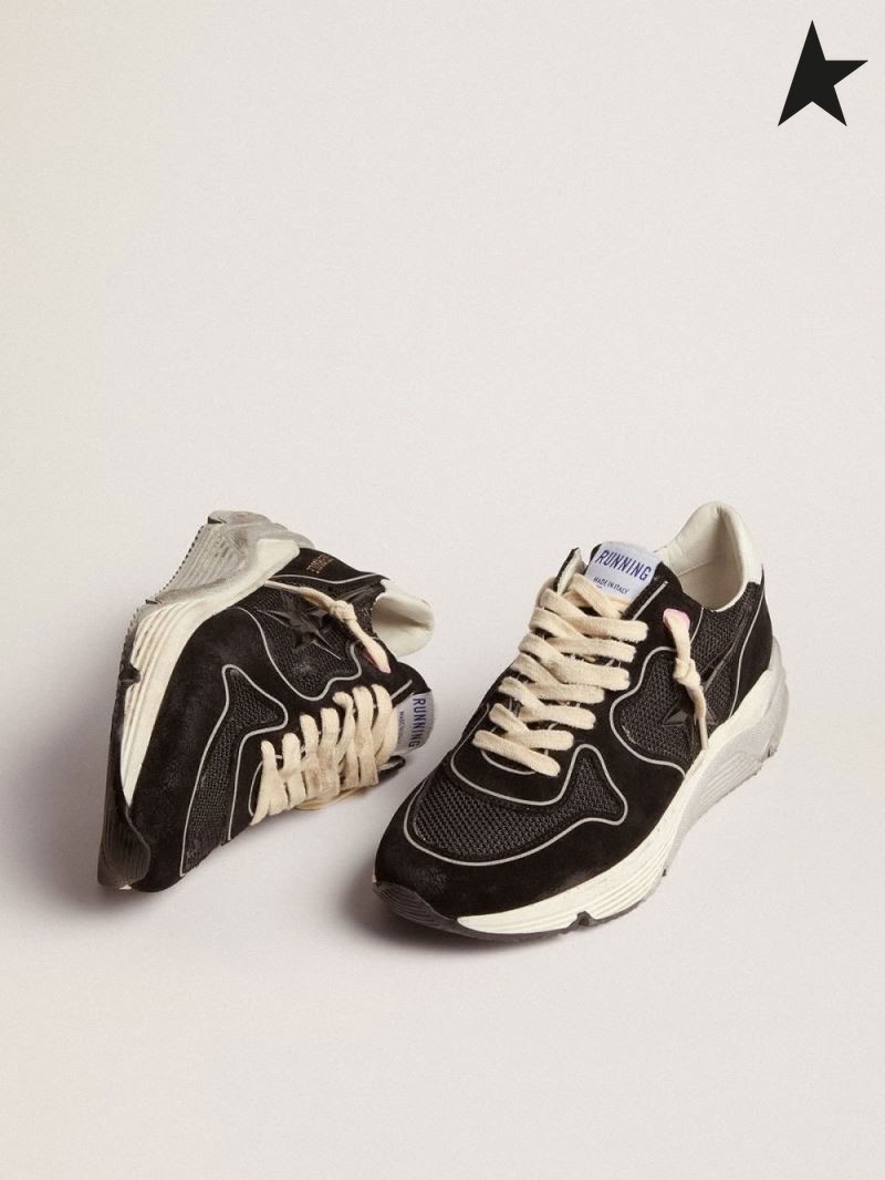 Golden Goose Zapatillas de Suela de las zapatillas de deporte con el negro de malla y gamuza superior y 3D estrellas negro blanco