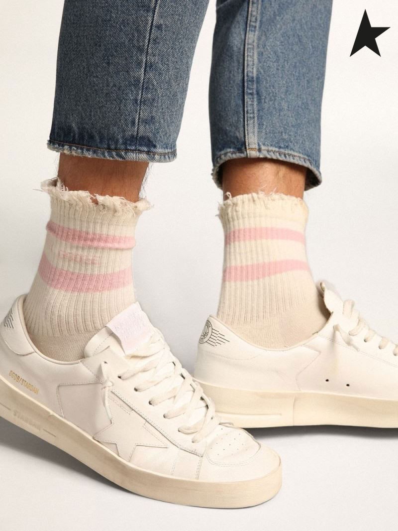 Golden Goose Ahdistunut viimeistely valkoinen sukat vauva-pinkki logo ja raidat valkoinen