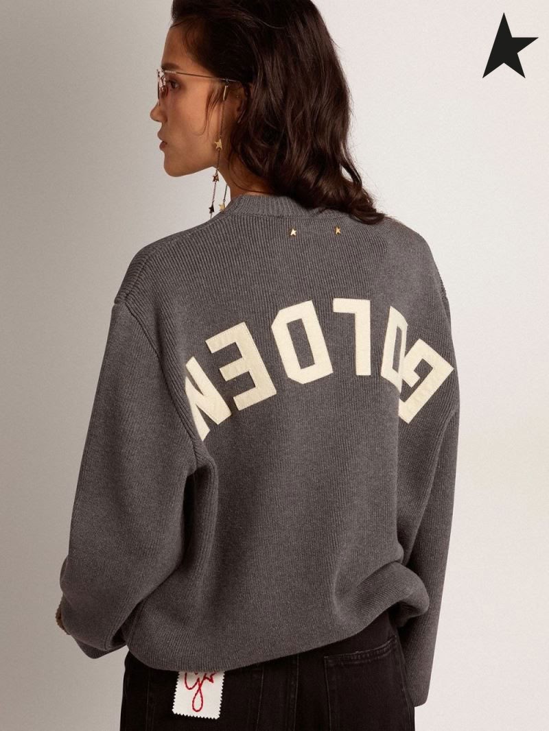 Golden Goose Golden collection pyöreä-aukkoinen pusero, tummanharmaa meleerattu puuvilla, jossa on erottuvan valkoinen logo selässä tumma harmaa