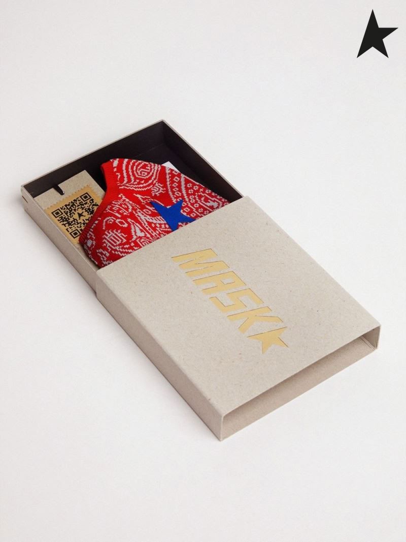 Golden Goose Huivi tulostaa Kultainen kasvot naamio sininen tähti ruskea punainen sininen
