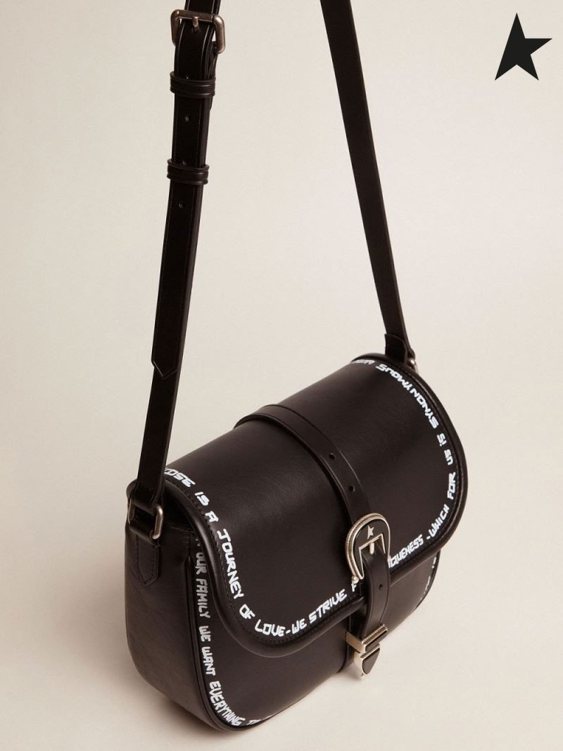 Golden Goose Medium black leather Rodeo Bag with screen print black
