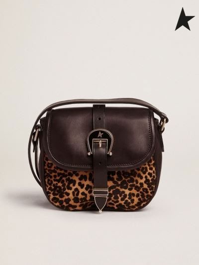 Golden Goose Pieni Rodeo Laukku musta nahka ja leopardi-print poni iho musta