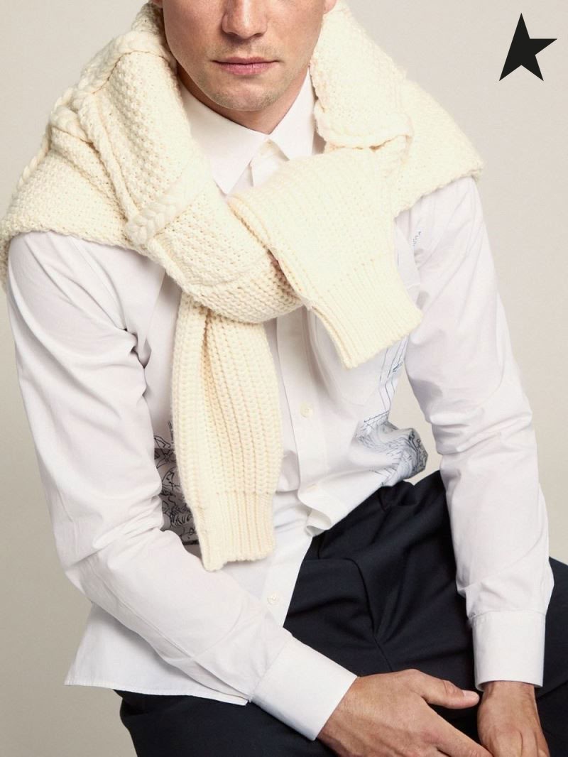 Golden Goose Poplin Journey collection Alvise shirt with contrasting ink-blue decoration white