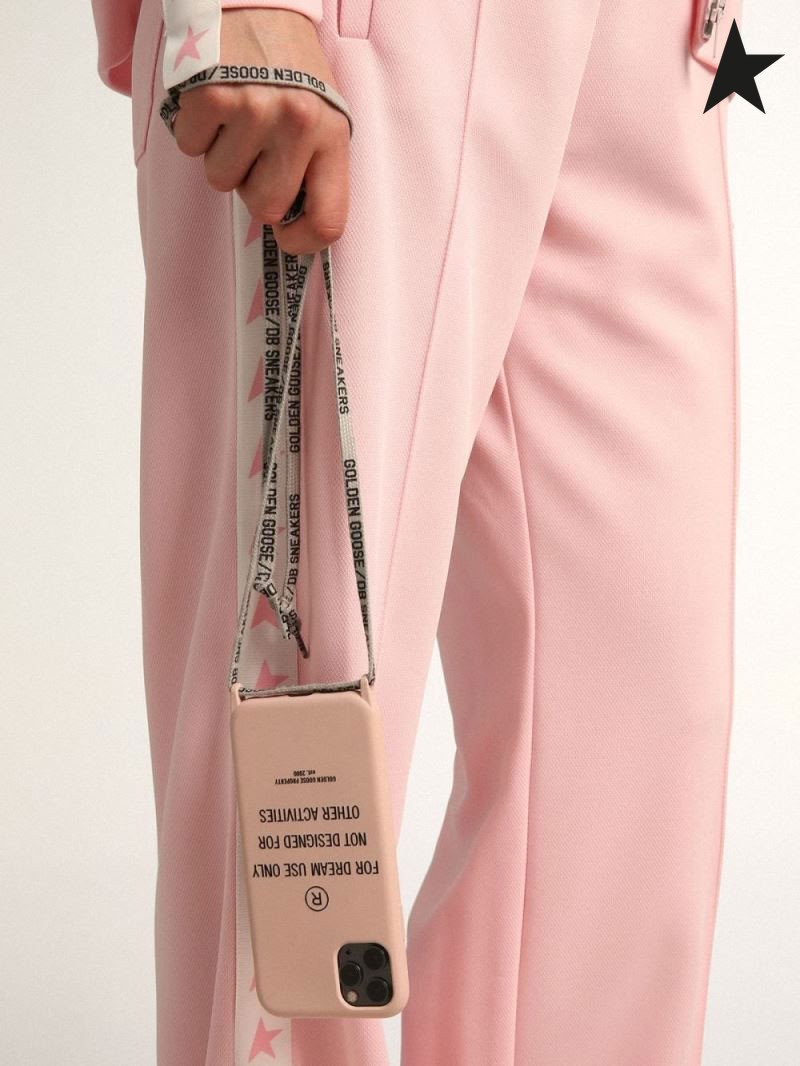 Golden Goose vaaleanpunainen kotelo iPhone 12 ja 12 Pro, jossa on erottuvan musta kirjaimin vaaleanpunainen