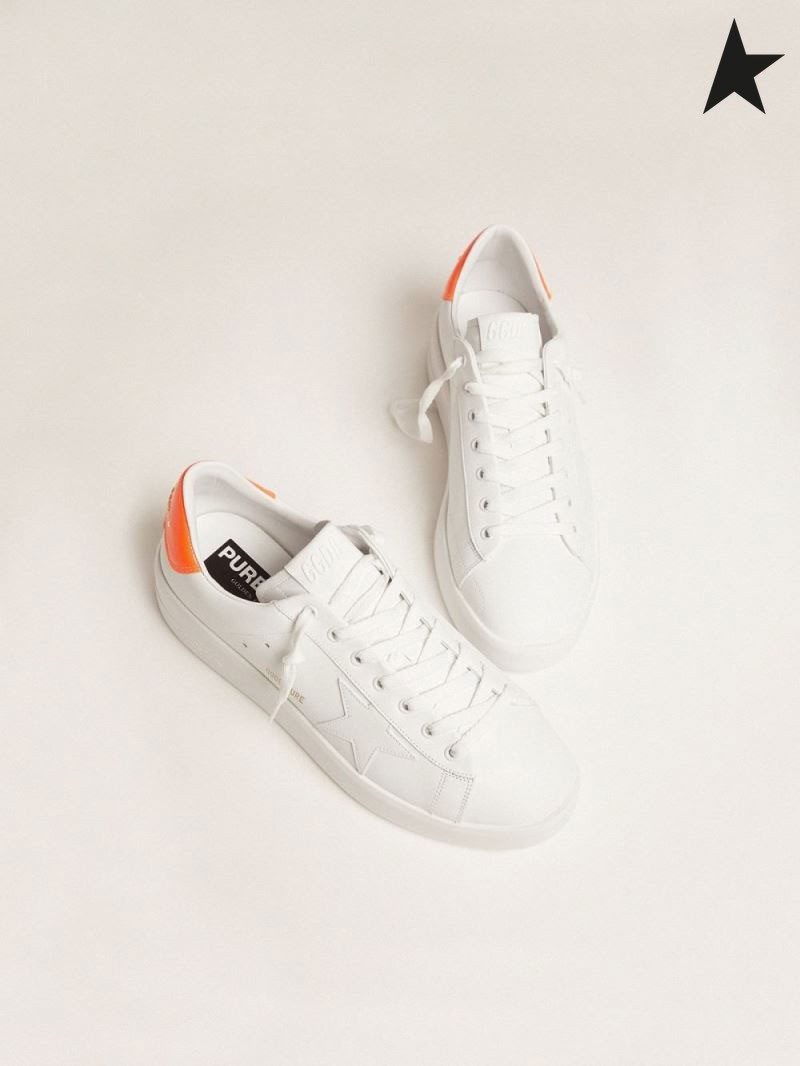 Golden Goose Valkoinen Purestar lenkkarit fluoresoiva oranssi kantapää välilehti