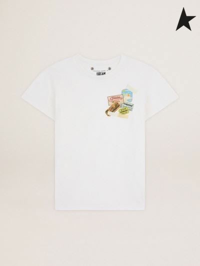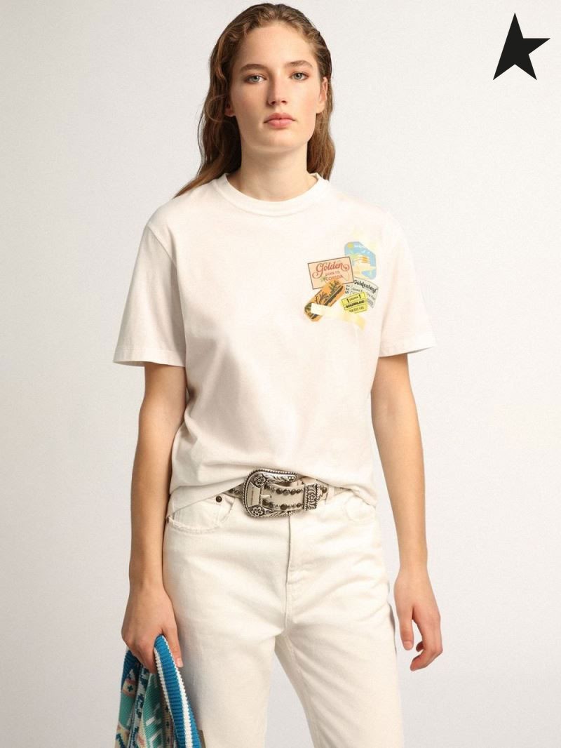 Golden Goose Blanche Voyage collection de T-shirt multicolore timbre impression blanc