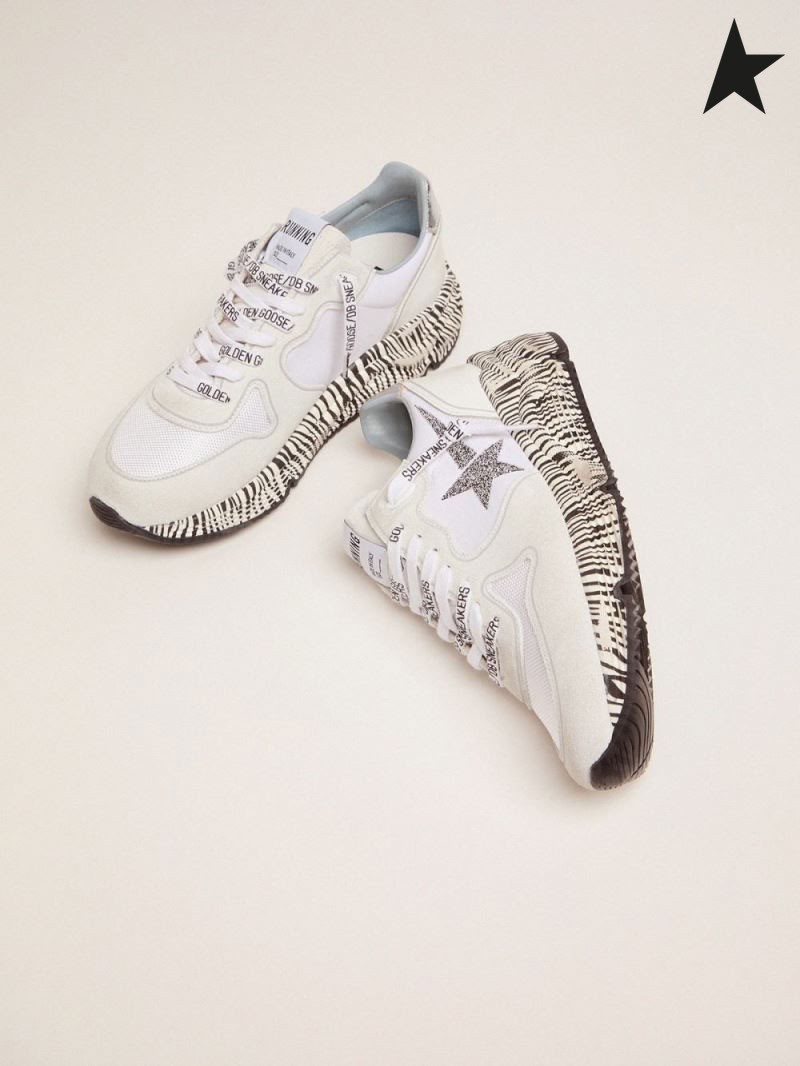 Golden Goose Chaussures Semelle baskets avec zebra-sole impression et de cristaux d'argent blanc