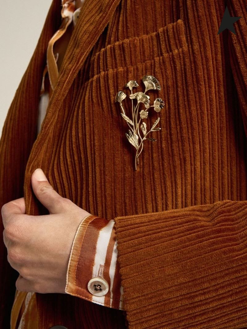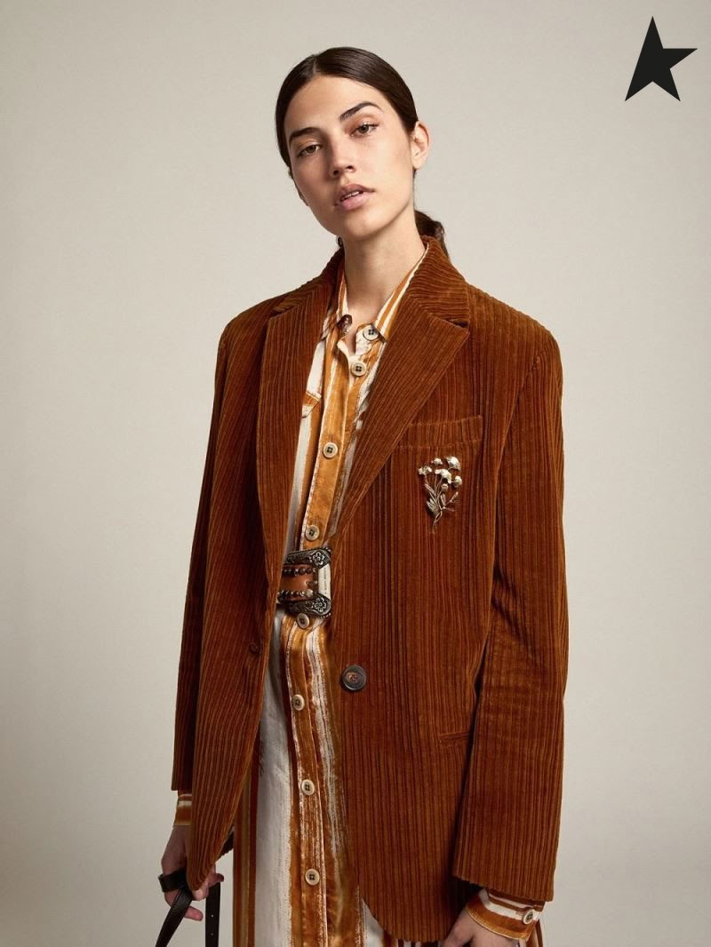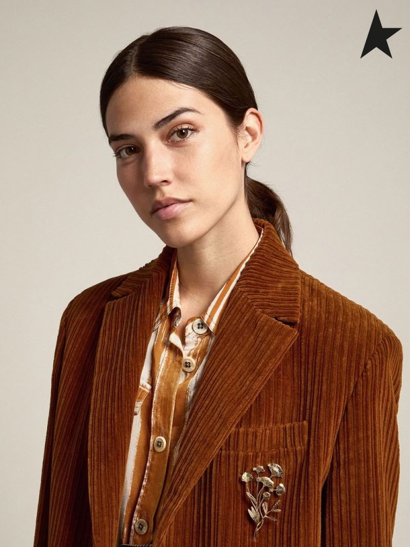 Golden Goose en terre Cuite de couleur Voyage collection Bova single-breasted blazer en velours côtelé en terre Cuite