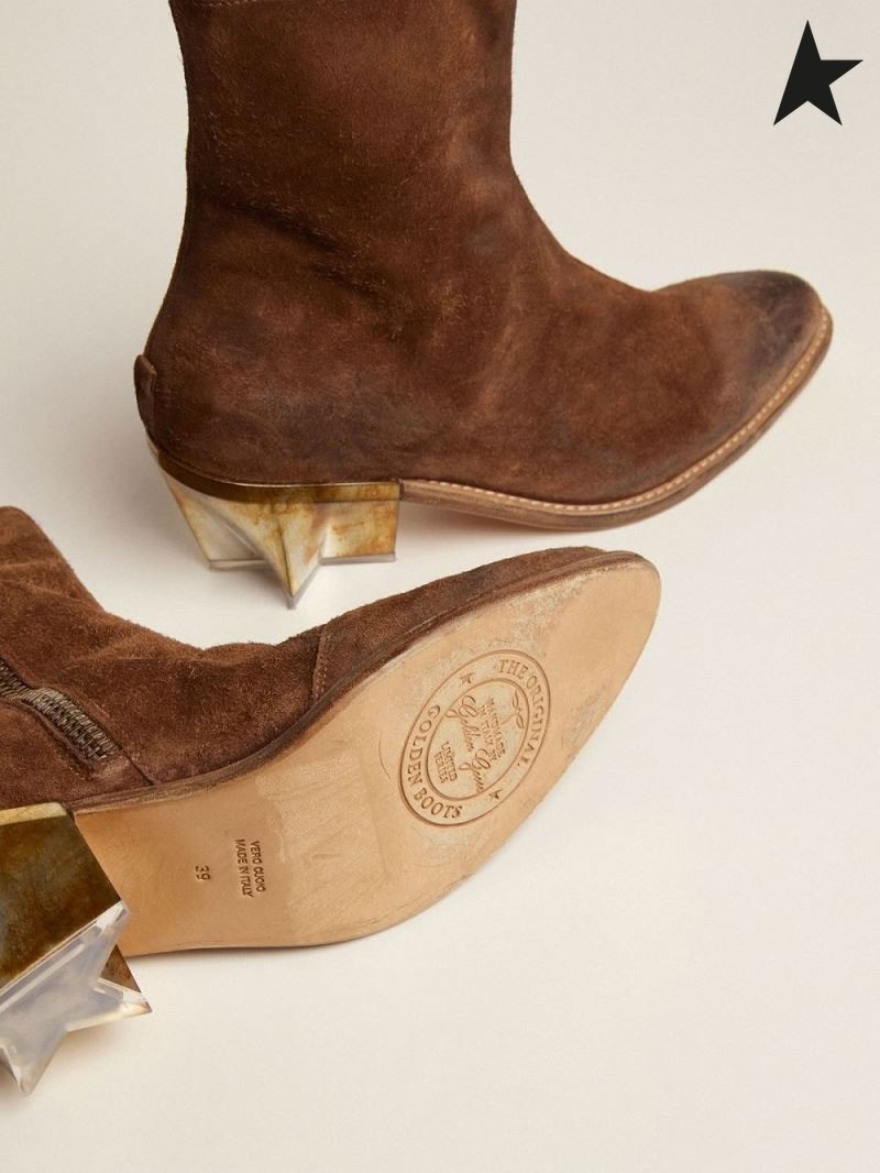Golden Goose Étoiles bottes marron en daim ciré avec les sculptures de talon avec une finition métallique brun