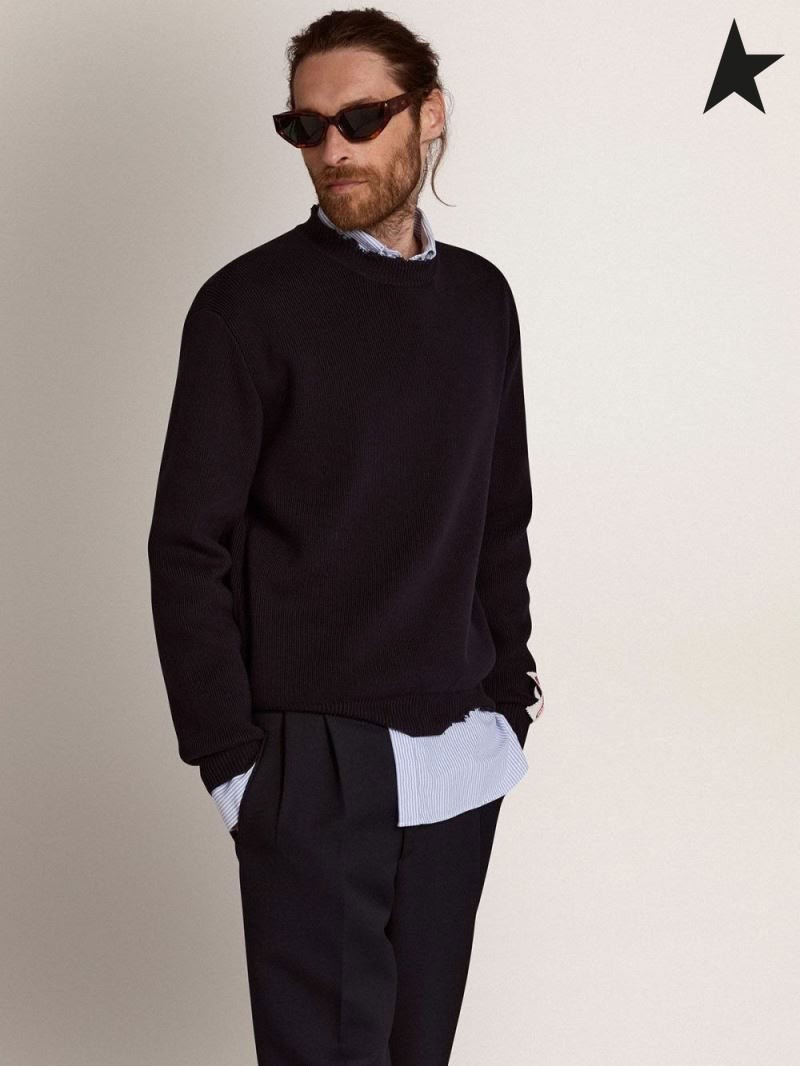 Golden Goose Golden collection col rond pull en bleu foncé en coton avec une détresse traitement bleu foncé