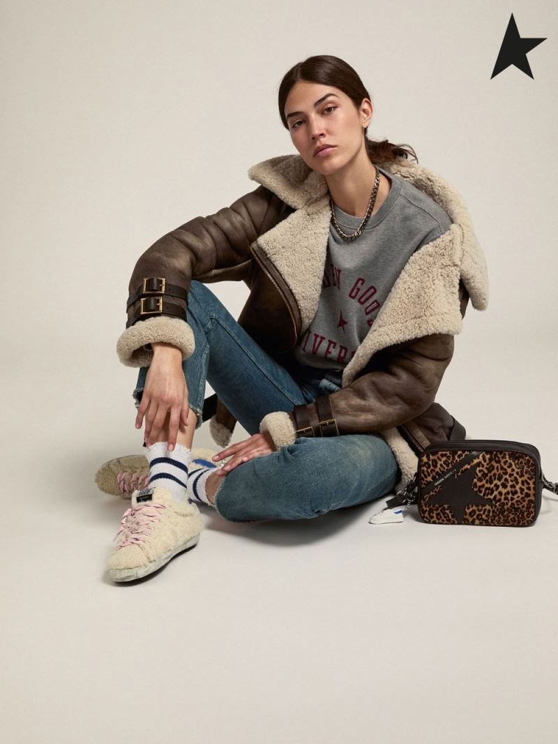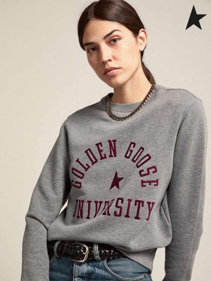 Golden Goose Gris chiné Voyage collection Athena sweat-shirt marron avec logo sur le devant gris