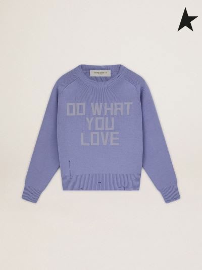 Golden Goose Pastel lilas tour de cou de Voyage de la collection de pull avec finition en détresse et de couleur argentée, lettrage Pastel Lilas