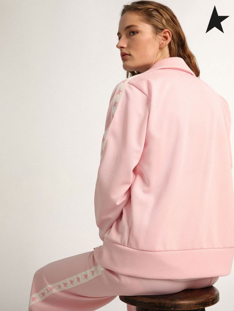 Golden Goose Rose Denise Star de la collection de sweat-shirt zippé avec bande blanche et rose contrasté étoiles