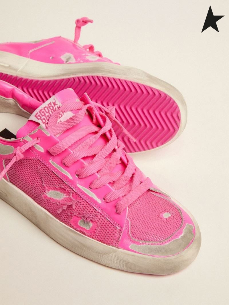 Golden Goose Stardan baskets rose fluo en cuir et mesh rose fluo