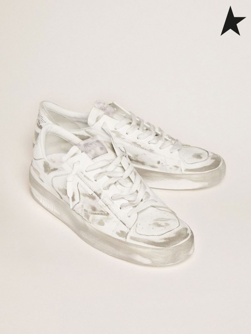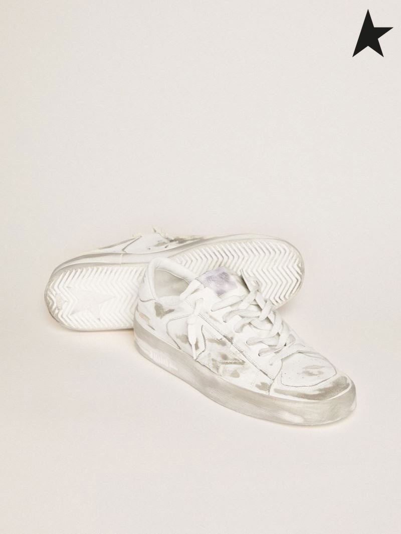 Golden Goose Stardan sneakers en cuir blanc avec vécu dans le traitement brun blanc
