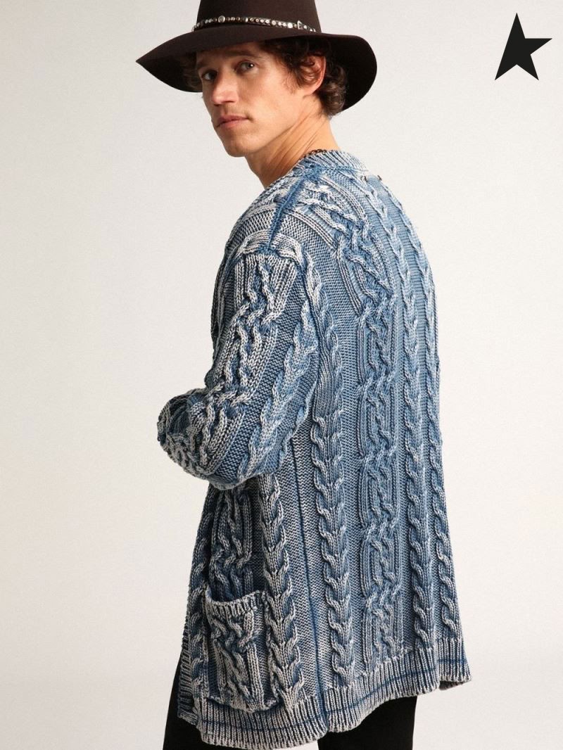 Golden Goose Voyage collection cardigan en tressé en coton bleu avec une finition stonewashed bleu