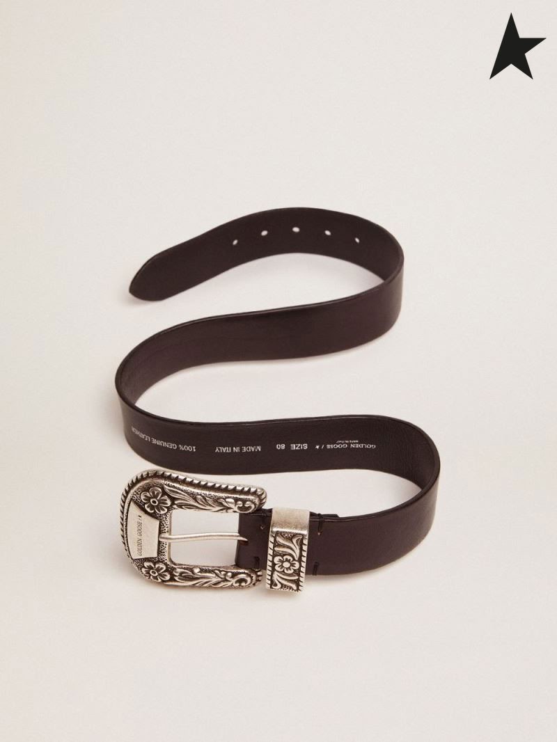 Poule aux œufs d'or de la dentelle, ceinture en cuir noir avec la couleur argentée décorée boucle noir