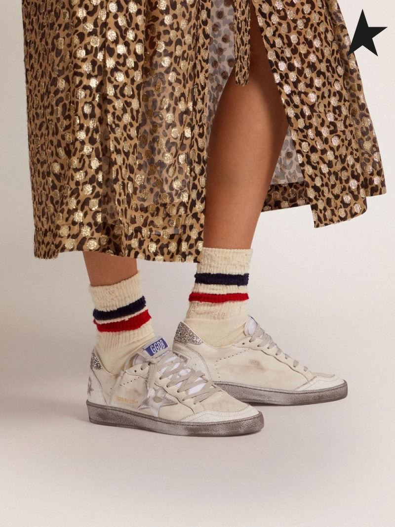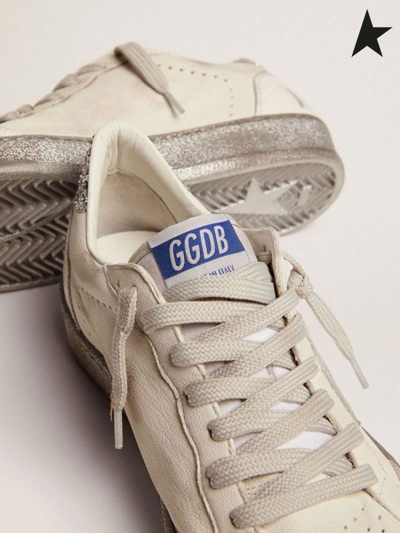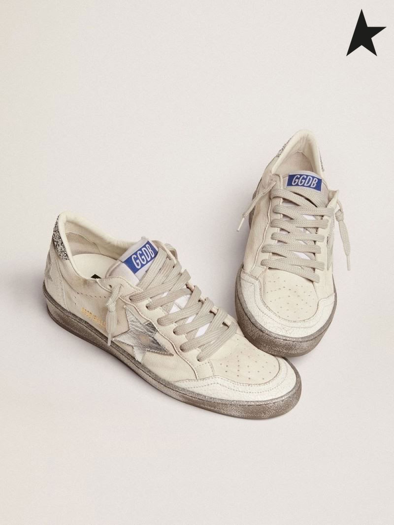 Gé órga Liathróid Star LTD sneakers le silver glitter súil cluaisín agus airgid lannaithe leathair réalta bán