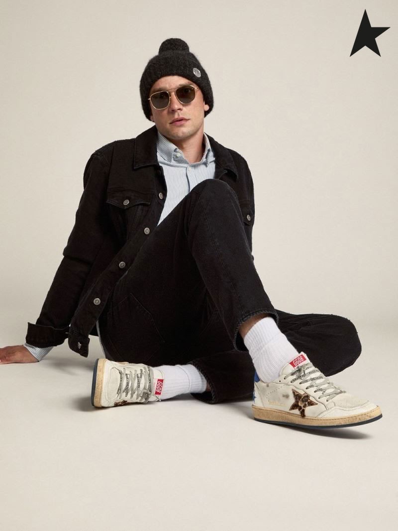 Gé órga Liathróid Star sneakers i leathar bán le gorm éadrom sonraí bán