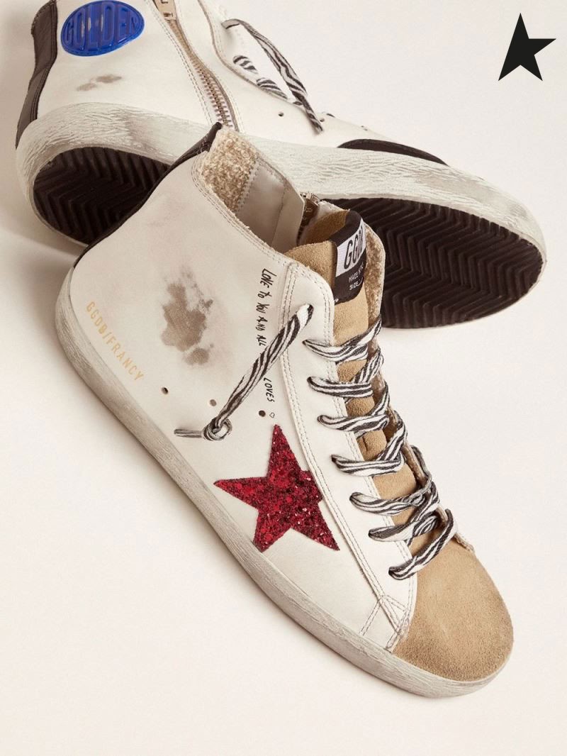 Órga Gé Francy sneakers le dearg glittery réalta agus lámhscríofa litreacha dearg