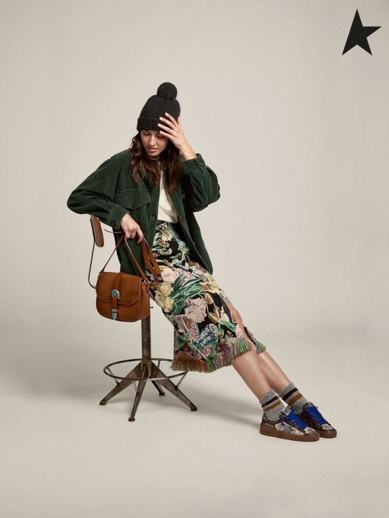 Órga Gé Mheán Mála Rodeo in tan-daite leathair le gorm éadrom sonraí donn