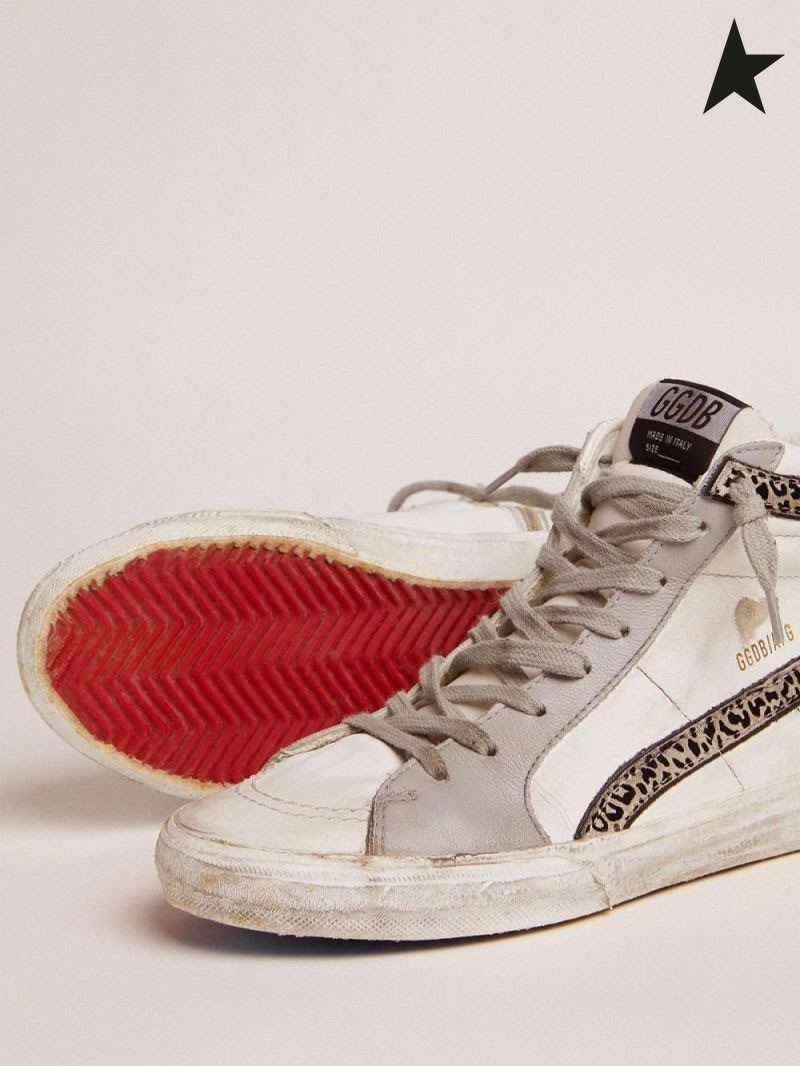 Órga Gé sneakers le bán agus liath leathar uachtair agus liopard-cló suede flash liath bán