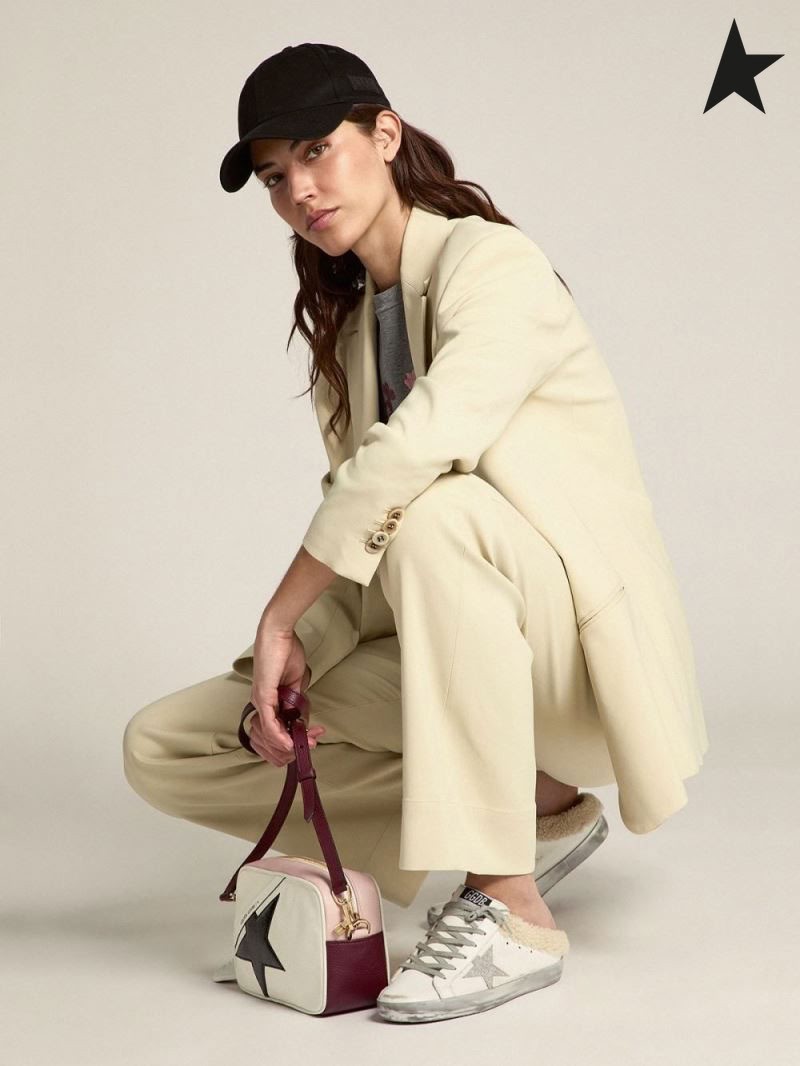 Órga Gé Super-Réalta Sabots i leathar bán le shearling líneáil sneakers